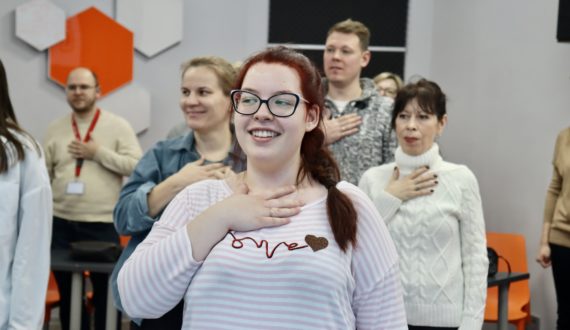 «За моими плечами в общей сумме более 20 000 часов выступлений, но каждый раз я испытываю приятное волнение перед тем, как выйти на сцену. Отлично справиться с ним помогает несложная разминка, которую я очень советую практиковать», – поделилась Елена Тимашова. Она показала собравшимся несколько действенных упражнений для разработки лицевых мышц, раскрытия лёгких, голосовых связок, раскрепощения тела и снятия ментальных блоков, которые каждый участник встречи попробовал сделать самостоятельно.