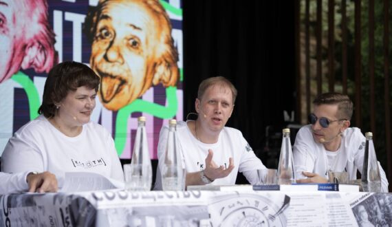 На главной сцене ульяновского парка «Семья» лекции чередовались с научно-популярными ток-шоу. Гости фестиваля науки стали зрителями шоу «Язык Эйнштейна», в ходе которого три эксперта из разных областей научных знаний обсудили последние новости науки.