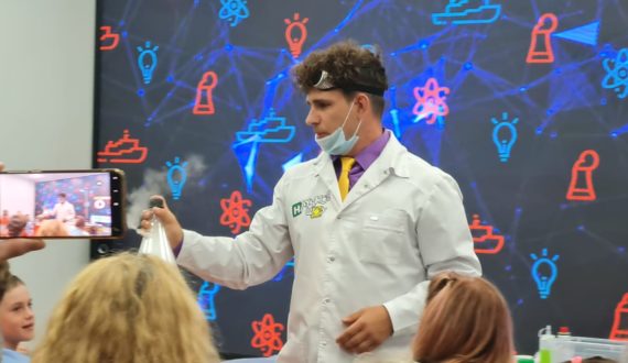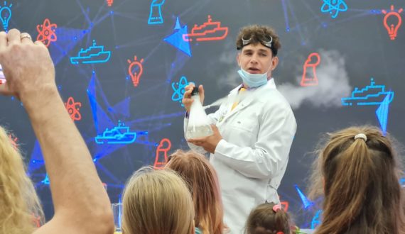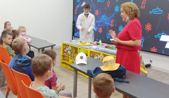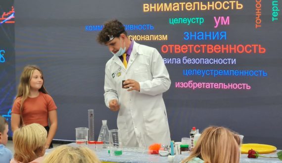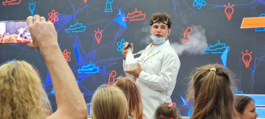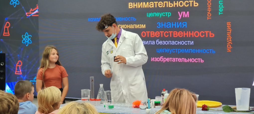 Новые знания участники получили в игровой форме. Актёры научного шоу объяснили «магию» научных явлений: почему меняется цвет, какова сила атмосферного давления, в чём тайна синего цвета. Ребята смогли удержать на ладони огонь и запустить генератор Теслы.