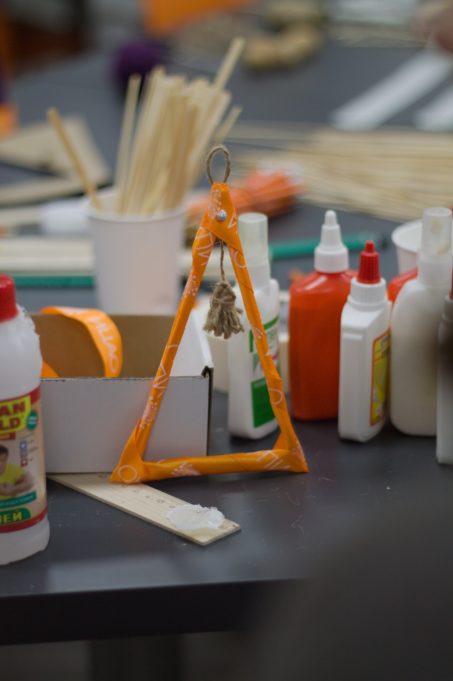 В связи с этим команда ИЦАЭ решила провести серию мастер-классов по «строительству» оригинальной ёлки. Первый мастер-класс был посвящён прочности и устойчивости. Его участники, опираясь на законы сопромата, под руководством директора ИЦАЭ Челябинска Ларисы Матвеевой создавали свою новогоднюю конструкцию из спагетти и бумажного скотча. В небольшом соревновании они должны были построить самую высокую свободностоящую «ёлку», на вершине которой должны были разместиться на выбор: маршмеллоу, пластиковая крышечка или грецкий орех в скорлупе. Самая высокая конструкция по итогу соревнования достигла 65см.