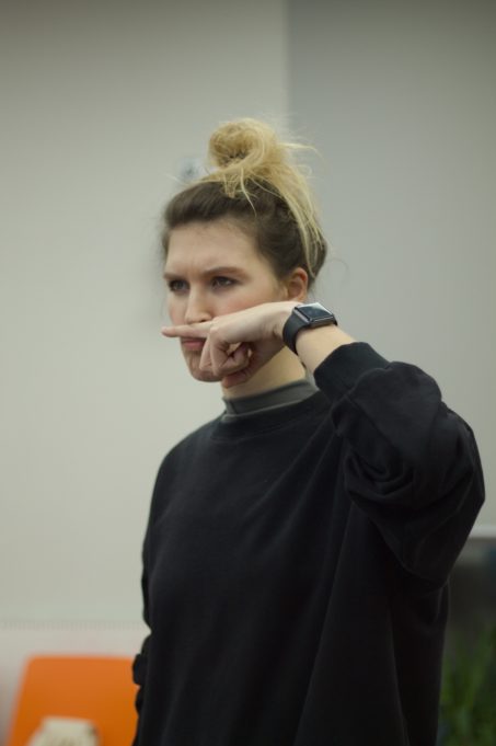 Вместе с Олегом участники тренировались в подражании, отражении и воображении, проверили себя в режиме актёрской многозадачности и обсудили особенности личности актера как такового: