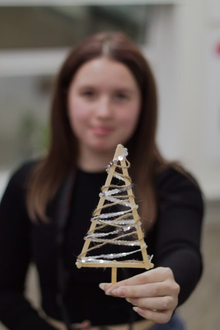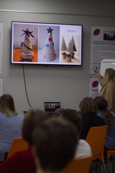 В продолжение вечера состоялся мастер-класс «Экоёлки» под руководством кандидата искусствоведения, доцента кафедры сервиса и художественной обработки материалов ЮУрГУ, члена Союза дизайнеров России Татьяны Вековцевой. Вместе с Татьяной из подручных материалов участники сделали оригинальные ёлочки, которые забрали с собой домой.