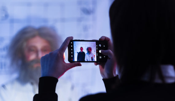 В конце 2021 года в честь 75-летия уникального предприятия, которое производит ключевые материалы для атомной энергетики — Чепецкого механического завода, команда ИЦАЭ Ижевска представила в Глазове научно-иммерсивную постановку. Жители атомного города погрузились в пространство, где закон всемирного тяготения не действует на Исаака Ньютона, Мария Кюри ставит световые эксперименты в воздухе, Дмитрий Менделеев творит то ли во сне, то ли наяву, а Альберт Эйнштейн предлагает совершить относительно-квантовую телепортацию. Опустившись на скамейку рядом с Игорем Курчатовым, каждый зритель научно-иммерсивной постановки смог услышать «голос эпохи», а звуковое техно–дерево только усиливало полученные аудио-впечатления.