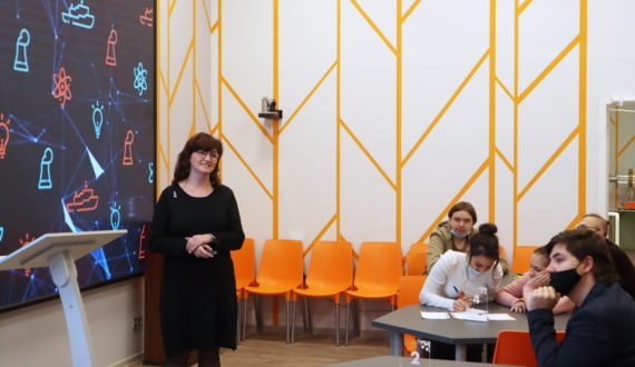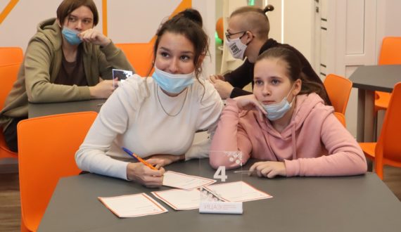 Затем в центр пришли студенты для проверки знаний об истории известных изобретений двадцатого века в командной интеллектуальной игре «Красиво атомы сложились: изобретения». С фирменным форматом сети ИЦАО гостей познакомила руководитель центра Наталья Кибисова. Для того, чтобы угадать известные изобретение или технологию на более раннем этапе и получить больше баллов, игрокам приходилось подключать эрудицию, логику и даже чувство юмора. В каждом туре им было предоставлено пять подсказок: фото известных личностей, отрывки из художественных фильмов, музыкальные композиции и другие.