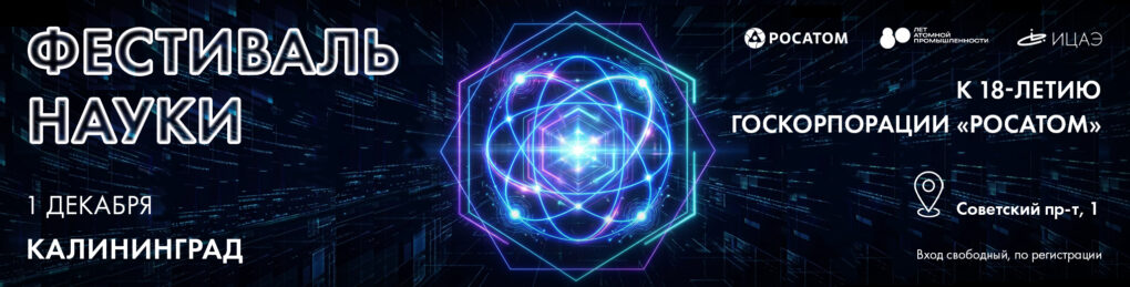 Фестиваль в Калининграде будет проходить на площадке Информационного центра по атомной энергии (ИЦАЭ) с 10:00 до 19:00. Его тематическая программа включит широкий спектр образовательных и просветительских мероприятий, рассчитанных на школьников, студентов и семейную аудиторию.