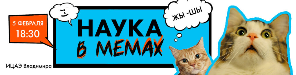Юмор помогает лучше разобраться в сложных научных темах. В 18:30 состоится премьера научно-юмористического ток-шоу «Наука в мемах» — нового формата для ИЦАЭ Владимира. В ходе шоу эксперты рассказывают, в чём заключается смысл той или иной шутки, и объясняют, какие явления и термины стоят за юмористическими картинками. В программе вечера мемы сразу по трём сферам науки: биология, химия и филология.