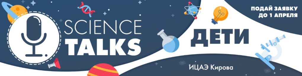В течении апреля и мая по понедельникам в ИЦАЭ Кирова пройдут встречи и мастер-классы. Участники узнают, что надо знать и уметь будущему популяризатору науки и как объяснять сложные темы, разберут форматы сети ИЦАЭ, пройдут мастер-класс по ораторскому искусству и научатся делать презентации. Завершится проект научно-популярным ток-шоу «Science Talks. Дети», на котором школьники выступят со своей темой.