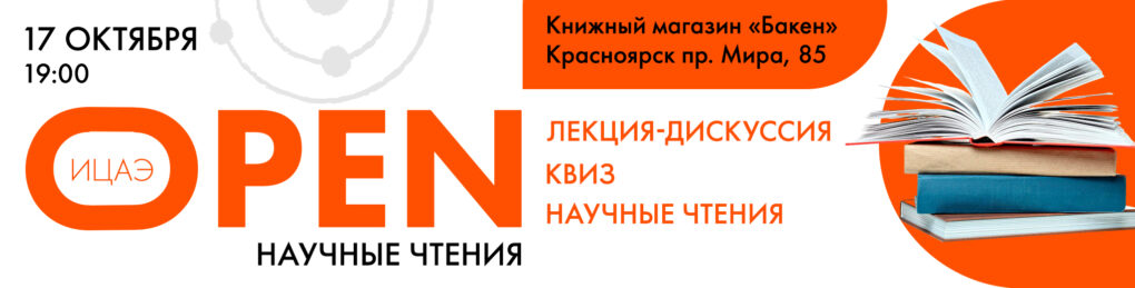 В 20:30 начнутся «Научные чтения». Вероника Головчиц, театральный журналист, блогер, автор каналов «Мемуары с бенуара» и «Прочитано-продано», и Анастасия Иванова, менеджер ИЦАЭ Красноярска, расскажут о своих научно-популярных книгах-находках, любой желающий также сможет принести с собой книгу этого жанра и рассказать о ней.