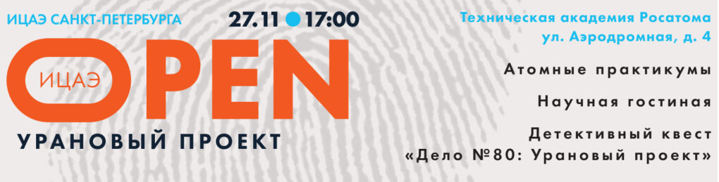 «ИЦАЭ OPEN: Дело №80» состоится 27 ноября в Технической академии Росатома, по адресу: ул. Аэродромная, д. 4. Начало в 17:00.