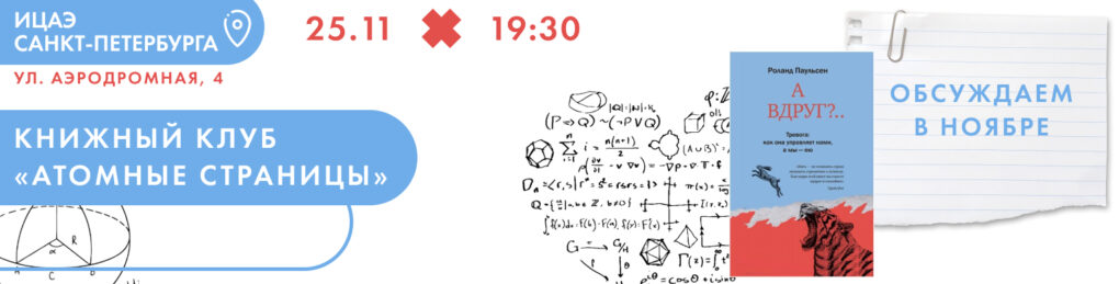 О том, как тревога управляет нашими решениями, откуда берётся беспокойство и можно ли превратить страх в ресурс, поговорят гости Информационного центра по атомной энергии (ИЦАЭ) Санкт-Петербурга на встрече книжного клуба «Атомные страницы» 25 ноября.