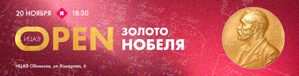 «ИЦАЭ OPEN: Золото Нобеля» пройдёт 20 ноября в 18:30 в ИЦАЭ Обнинска по адресу: ул.Комарова, д.6, 1 этаж. Вход с обратной стороны здания.