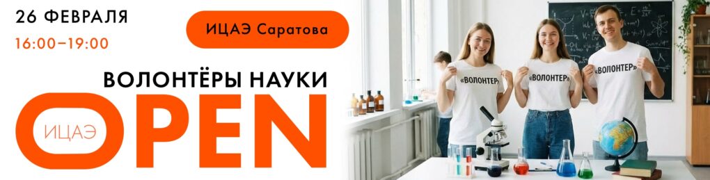 Какие возможности даёт волонтёрство в ИЦАЭ? Как создать научно-популярное мероприятие? Развить стрессоустойчивость, познакомиться с работой сети ИЦАЭ и «Союза добровольцев России» и стать волонтёром науки приглашает Информационный центр по атомной энергии (ИЦАЭ) Саратова. Тематический «ИЦАЭ OPEN: волонтёры науки» пройдёт 26 февраля.