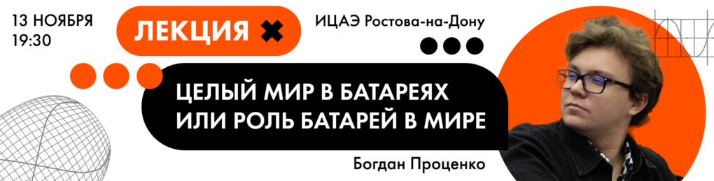 Научно-популярную лекцию «Целый мир в батареях или роль батарей в мире» организует 13 ноября Информационный центр по атомной энергии (ИЦАЭ) Ростова-на-Дону в рамках проекта «ИЦАЭ OPEN».