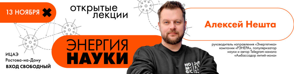 Лекция «Литий-ионные аккумуляторные батареи: от истории создания до настоящих дней – кто, когда, зачем, и что теперь с этим делать!?» состоится 13 ноября в рамках федерального проекта «Энергия науки». Мероприятие организовано Информационным центром по атомной энергии (ИЦАЭ) Ростова-на-Дону.