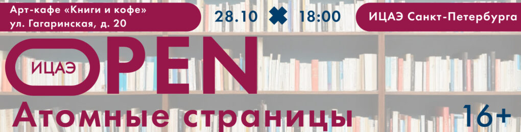 «ИЦАЭ OPEN: атомные страницы» состоится 28 октября, в арт-кафе «Книги и кофе», по адресу: ул. Гагаринская, д. 20. Начало в 18:00.