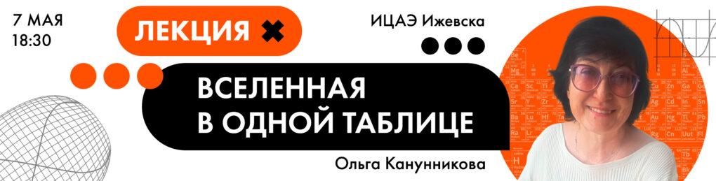 Лекция состоится 7 мая в 18:30 на площадке Информационного центра по атомной энергии (ИЦАЭ) Ижевска по адресу: ул. Красноармейская, 109А (оранжевая входная группа с правой стороны здания). Возрастное ограничение: 16+