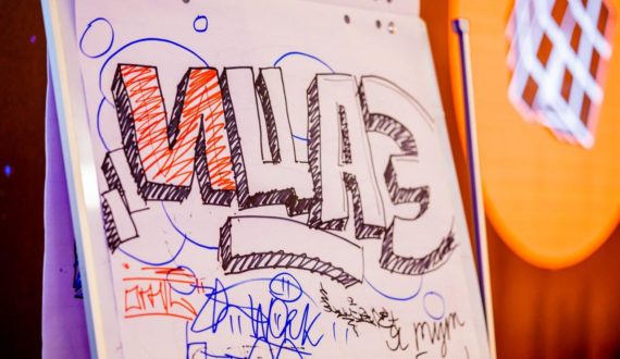 Параллельно в видеозале Центра проходили мощнейшие sketch battle и tag battle. Участники sketch battle за ограниченное время создавали скетч на заданную тему, передавая атмосферу, а дополнительное условие такого «боя» – понравиться зрителям и вдохновить их своей работой. Зрители могли наблюдать за работой граффити-скетчеров, заряжались эмоциями и драйвом от процесса. Куратором джема стал известный граффитист Main One, при участии Blok Crew.