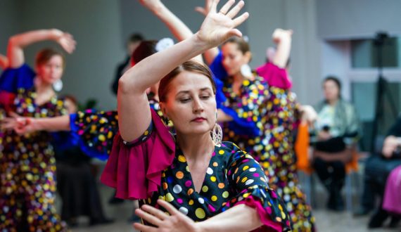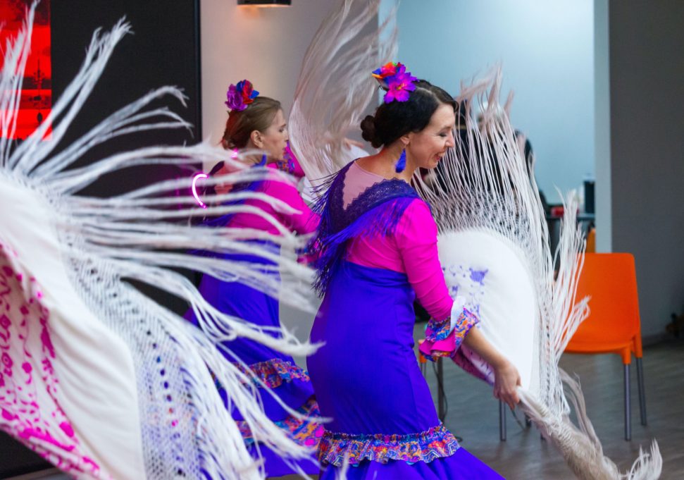 На динамичной лекции «Энергия ритма» педагог, хореограф, танцовщица фламенко, пятикратная чемпионка Всемирной танцевальной олимпиады в номинации «Фламенко», организатор всероссийского фестиваля Flamenco de primavera Лариса Хорват и исполнительница фламенко, ученица Школы фламенко Ларисы Хорват журналист Наталья Окорокова рассказали о том, сколько нот у кастаньет, какой длины шлейф у платья танцовщицы, чем стучат туфли и почему кричит певец?