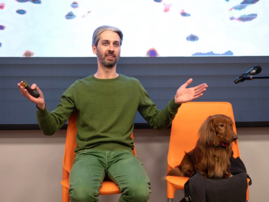 Вечерняя программа прошла в формате научно-популярной вечеринки. Представители более десяти пород собак, начиная от малых, среди которых были русский той-терьер, джек-рассел-терьер, померанский шпиц, чихуахуа, мальтипу, йоркширский терьер и миниатюрная такса, до средних — корги, левретка, миниатюрный бультерьер и других, присутствовали на «Dog party в научном формате».
