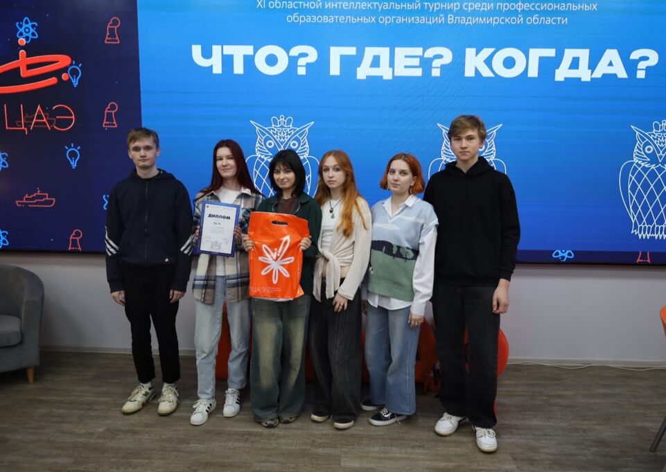 Ежегодный турнир по интеллектуальной игре «Что? Где? Когда?» среди профессиональных образовательных организаций Владимирской области состоялся в 11-й раз. Организаторы мероприятия — Информационный центр по атомной энергии (ИЦАЭ) Владимира и Министерство образования Владимирской области.